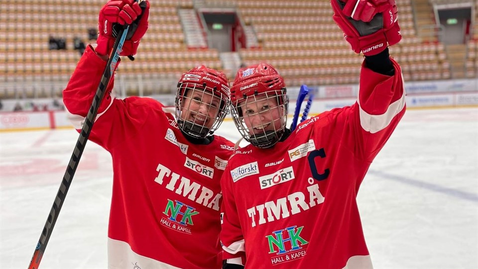 Näst sista matchen i Damtvåan Norr för Timrå Sundsvall och Björklöven stod för motståndet i eftermiddag. Ett Björklöven som vi mötte den 29 januari i Umeå och den matchen slutade 8-1 i Umeå-lagets favör. Det var alltså ett rejält revanschsuget Timrå/Sundsvall som ställde upp idag som kom från en bortahelg med två förluster i bagaget. (4-9 mot Kiruna och 1-9 mot Luleå). Björklöven kom till Timrå med ett decimerat lag. Båda deras ordinarie målvakter var otillgängliga idag och en tapper Ella Ernstsson, forward född 2007 fick låna målvaktsutrustning och ställa sig i målet. Definitivt inte en tacksam uppgift och redan efter 1:20 av den första perioden kom första målet för Timrå/Sundsvall. Ett inlägg mot mål från högerkanten av Annie Svedin, där pucken letade sig in bakom Ella. Repliken från Björklöven kom dock snabbt och redan efter 2:21 satte Maja Holmgren 1-1, assisterad av Eleonor Ålstig. Följt av lite trevande spel från båda lagen så drabbades Björklöven av en utvisning efter 6:35. Inget bländande powerplay från Timrå/Sundsvalls sida men 10 sekunder innan Ida Säfvenberg skulle få komma tillbaka in på isen så satte Emilia Nymark 2-1. Knappt minuten senare var det dags för Annie Svedin, matchens bästa spelare, att åter igen hitta målet. 4-1 sattes av Meya Näslund direkt efter tekning i Björklövens zon, en förlupen puck där Ella Ernstsson såg lite förvånad ut över att pucken letat sig in bakom henne. Den andra perioden får gå till historien som Timrå/Sundsvalls mest effektiva period. 9 skott, varav 6(!) hittade in bland nätmaskorna. Systrarna Lindström (Sofie och Hanna, bilden ovan) var först ut, sedan i tur och ordning Anna Hellström, Maja Åkerlund x 2 och Alva Rindberg. 10-1 var alltså ett faktum redan efter drygt halva matchen spelad men fler mål blev det inte denna eftermiddag. Två lag som båda haft en kämpig säsong med målskyttet hade det väldigt svårt för att få till några farliga avslutet resten av matchen men vad gör det en dag som denna? Ett helt fantastiskt resultat och detta gjorde att Timrå/Sundsvall nu gick förbi både Björklöven och Kiruna i tabellen, med en match kvar att spela. Linnéa Schalander gjorde som så ofta en riktigt bra insats i målet med flera riktigt bra räddningar. Andra som bör nämnas är Annie Svedin, som alltid är farlig, oavsett vilket motstånd vi har. Maja Åkerlund går från klarhet till klarhet och ligger nu på en andra plats i Damtvåans poängliga. Det är väldigt starkt jobbat med tanke på vår placering i tabellen med endast 7 poäng. Emilia Nymark (13:e plats i poängligan) är alltid rolig att se också, hon kommer att gå långt. Systrarna Lindström är också en fröjd att se på isen, det finns mycket hockeykunnande i den familjen och deras erfarenhet kommer Timrå/Sundsvall till godo. Timrå/Sundsvall - IF Björklöven: 10-1 (4-1, 6-0, 0-0) Skott: 23-20 (11-4, 9-6, 3-10) Utvisningar: Timrå/Sundsvall 4x2, Kiruna 4x2