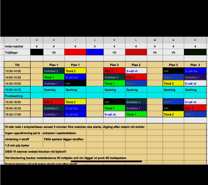 På söndag är det sammandrag i Härnösand i Högslättens Ishall för de som som är anmälda. Samlingstid 12.15. Åtkomst till omklädningsrum fr ca 12.30 lappar på dörrarna uppsatta. På plats delas barnen upp i två lag lag. Röd o vit. Tröjor delas därefter ut. Barnen bör ha ätit en bra frukost och lunch innan samling. Medtag Första matchen börjar 13.30. Nästa 14.00. Bifogar spelschemat. AIK grillen är öppen hela dagen, även möjlighet att värma mat i Micro. Om ni har frågor, kontakta mig. 0706726388 el mail therese.lundin@timraik.se Eller Johan om det är på matchdagen 0703409044 Mvh Lycka till 😁 U14 13 feb 2020 0kommentarer